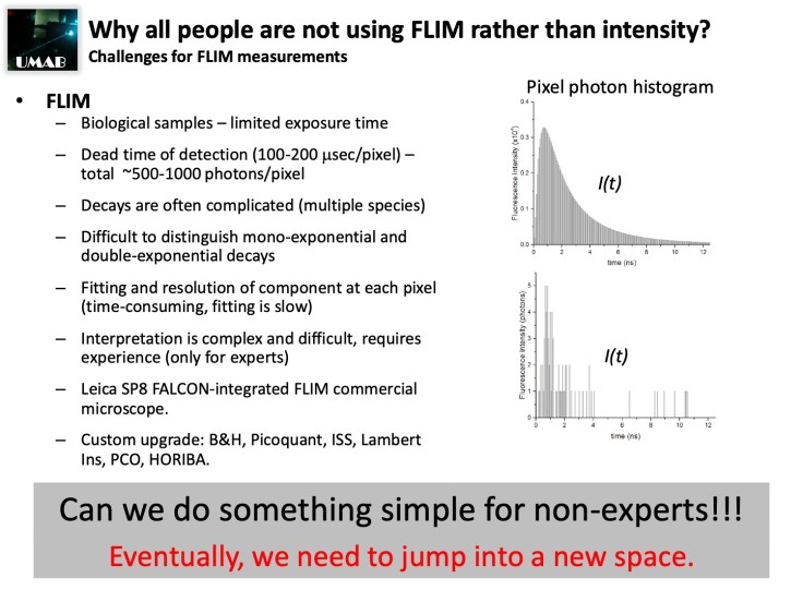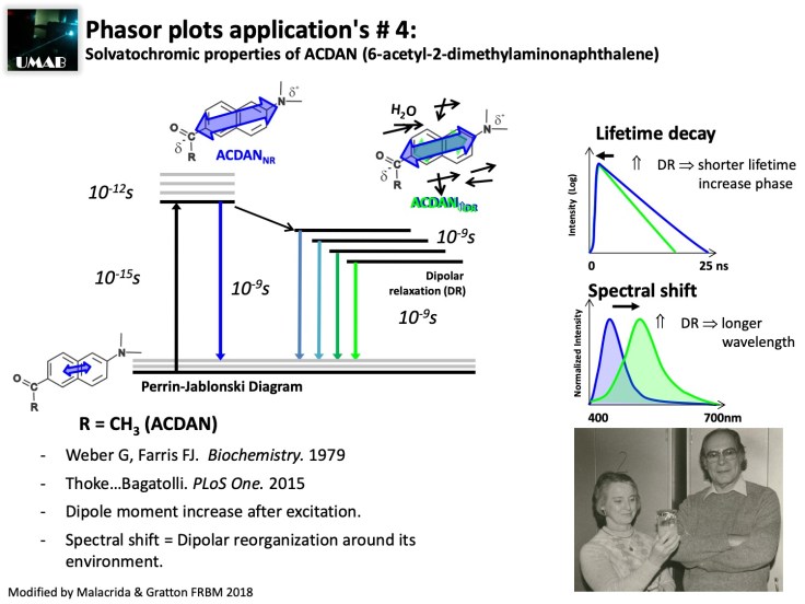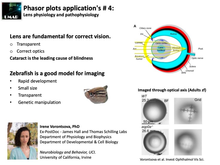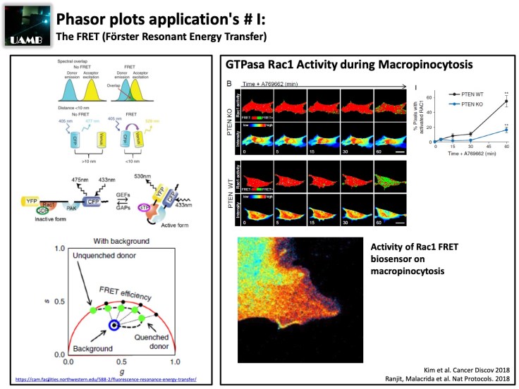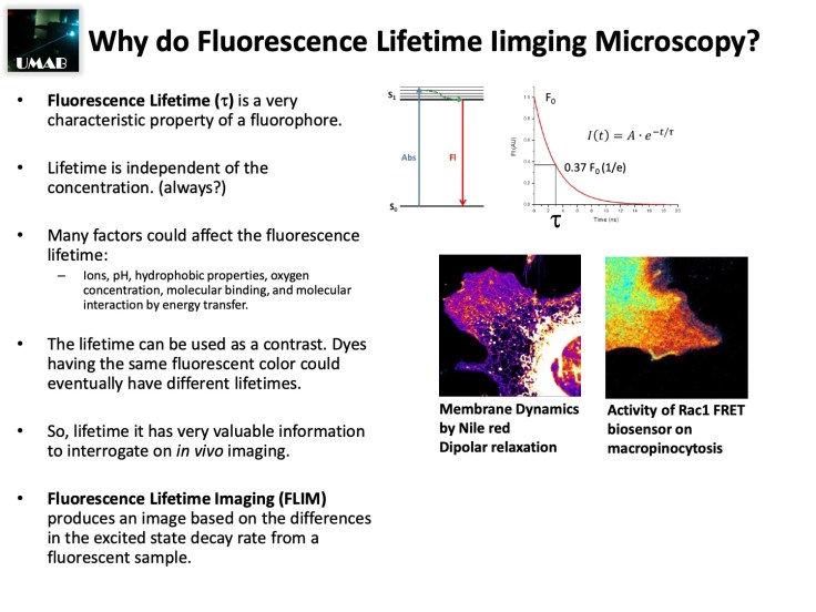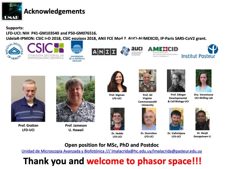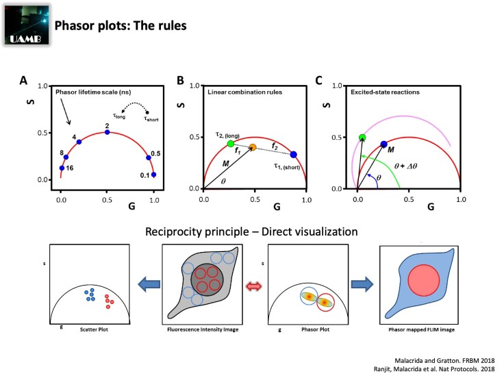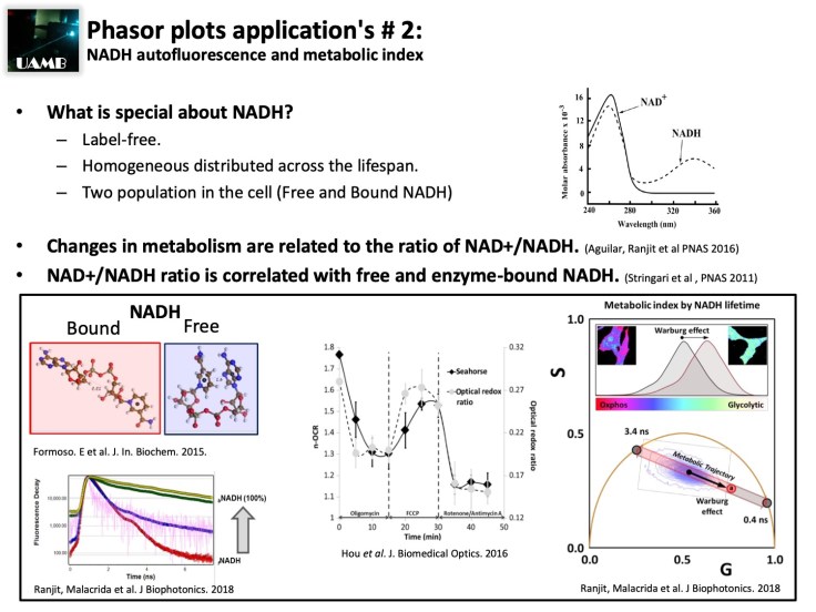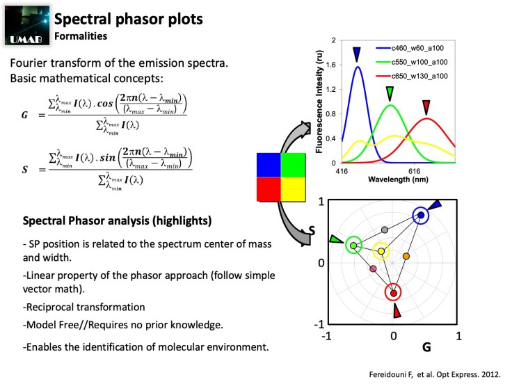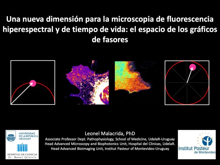 En este seminario cubriré los avances más importantes que hemos realizado en los últimos años sobre la utilización del espacio de fasores para analizar, interpretar y cuantificar datos de medidas de tiempo de vida e hiperespectrales en imágenes. Por último, presentaremos algunos de los proyectos que estamos desarrollando en la actualidad y las perspectivas de la nueva Unidad de Microscopia Avanzada y Biofotónica.